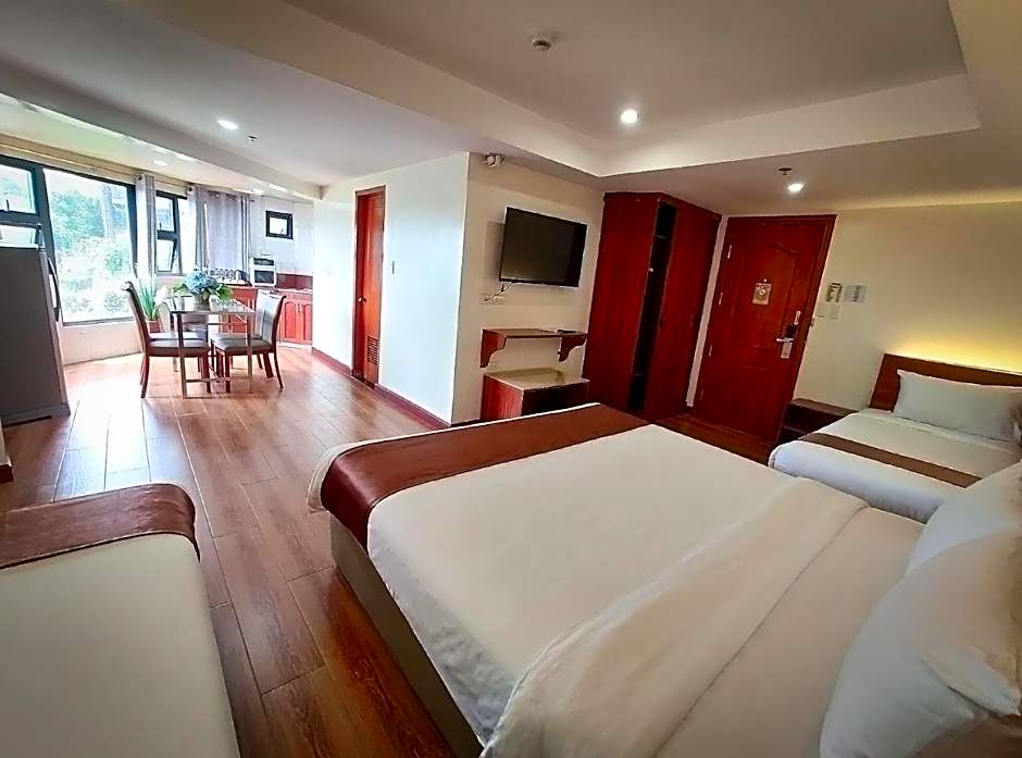 The well-equipped kitchen features a refrigerator, kitchenware and an electric kettle. A seating area with a flat-screen TV, a desk, a balcony and a private bathroom are featured in this spacious quadruple room. The unit offers 2 beds.